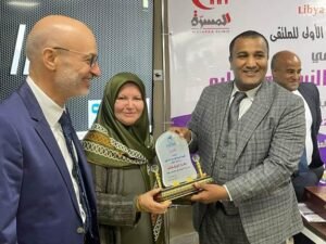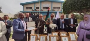 وتم تكريم الوفد المصري ( وفد لجمعية العربية والشركات المساهمة في نجاح هذه الورش العلمية التي تمت بالمعهد القومي لعلاج الأورام صبراتة